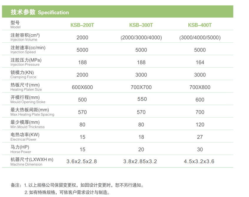 菜單產品中心Product center 全自動真空硫化機 全自動平板硫化機 全自動硅橡膠硫化機 高精密度全自動真空成型機 高精密度全自動油壓成型機 高精密度全自動射出成型機 特殊定制機型 周邊輔助設備 IMD氣體高壓成型機 熱門產品 →先進先出立式橡膠射出硫化機 KSU200-1500(Tons)→臥式橡膠射出硫化機 KSA200-2000(Tons)→先進先出臥式硅膠射出硫化機 KSB 200-500(Tons) 返回您的位置:首頁 → 產品中心 → 全自動硅橡膠硫化機 先進先出臥式硅膠射出硫化機 KSB 200-500(Tons)類別:全自動硅橡膠硫化機 簡介:高精度光學尺控制射出量,配合三段式射出控制; 在線咨詢 返回列表 產品說明 機臺特點· 全比例式油路系統;· 流線型無死角回料逆止閥設計;· 全方位電腦顯示控制系統;· 高精度光學尺控制射出量,配合三段式射出控制;· 借有日制高科技紅外線安全電眼;· 雙螺旋式回路溫控系統;· 多段式入料氣泡消除設計;· 可配合冷熱流道流料模具設計。· 大容量硅膠進料炮筒,可一次性放料20kg-25kg 技術參數 適用產品 硅膠工藝品、電力絕緣產品、性用品、醫療用品、體育用品和廚房用品等。 相關產品 先進先出立式橡膠射出硫化機 KSU200-1500(Tons) 臥式橡膠射出硫化機 KSA200-2000(Tons) 先進先出臥式硅膠射出硫化機 KSB 200-500(Tons) 立式液態硅膠射出硫化機KSLS-850系列